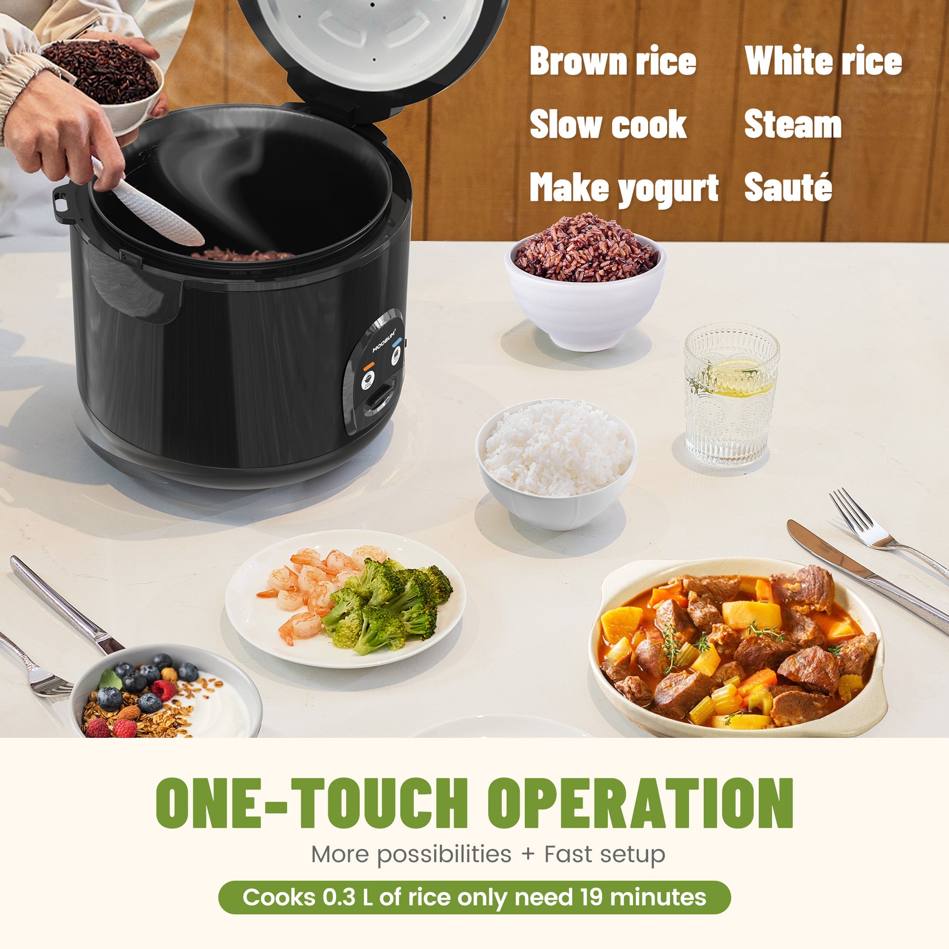 - ONE-TOUCH MULTIFUNCTION: The one-button operation is very easy to use. You can easily cook rice, quinoa, steam vegetables, slow-cooking stews, sautéing, and even make yogurt/cakes and other culinary tasks. 24-hour keep-warm function included.
